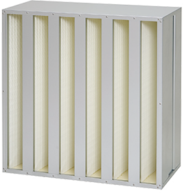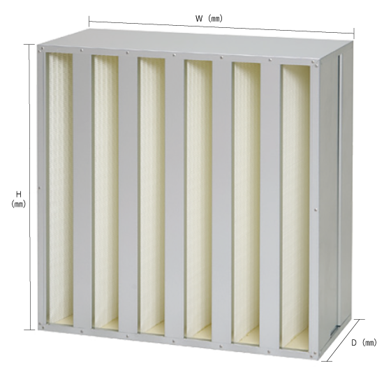 厚さ(D):292mm【制菌防カビ対応セル型】人の健康に悪影響がない制菌防カビ剤で安全!ガラス繊維ろ材を糸状セパレータを用いて折り込んだ材パックをV字状に配置し、ろ材面積は従来セパレータ型の約2倍!低圧力損失・長寿命を実現したフィルタです。