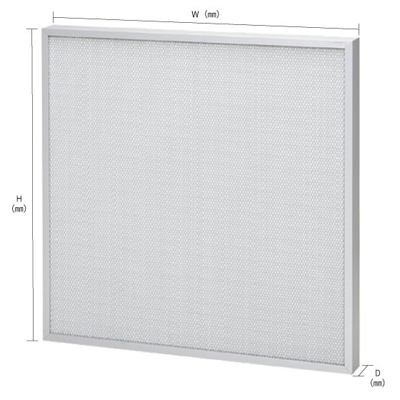 厚さ(D):52mm・68mm【制菌防カビ対応パネル型】奥行68㎜の薄型!ガラス繊維ろ材を糸状セパレータを用いて折り込んだ材パックをV字状に配置し、ろ材面積は従来セパレータ型の約2倍!低圧力損失・長寿命を実現したフィルタです。