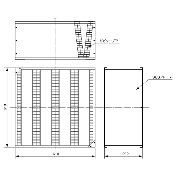 50Pa | 610H×610W×292D | 0.03秒 | 120,000hr-1 | SUS304 | EPDM | 不織布 | 約17㎏ |