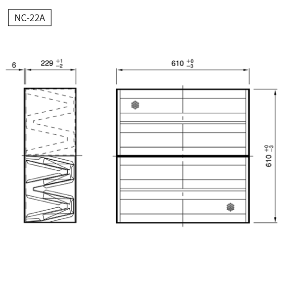 | NC-22A | 610 | 610 | 229 | 34 | 28.3 | 50,000 | 0.072 | 約85 | 約60 | 34.0【17.0】 | 32.3【15.3】 | 35.7【18.7】 | 34.7【17.7】 | 34.9【17.9】 | 44.2【27.2】 | 36.0【19.0】 | 17 | |