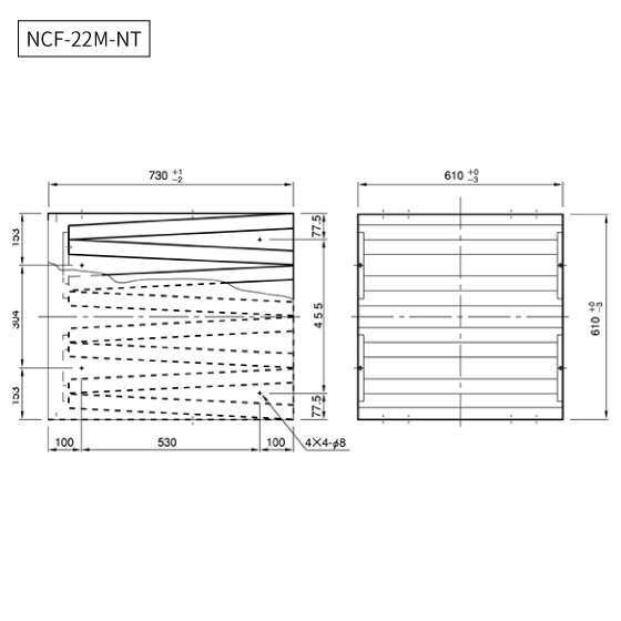 | NCF-22M-NT | 610 | 610 | 730 | 116 | 56.6 | 30,000 | 0.120 | 約145 | 約135 | 140.0【58.0】 | 134.2【52.2】 | 145.8【63.8】 | 142.3【60.3】 | 142.9【60.9】 | 174.8【92.8】 | 145.8【63.8】 | 82 | |