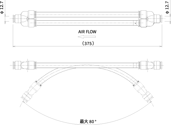 - 軽量小型:樹脂製チューブ仕様で曲げながらの設置が可能