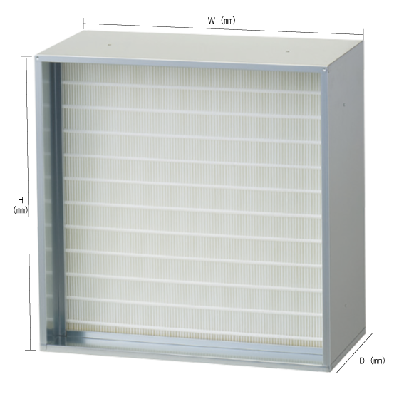 厚さ(D):292mm、ユニバーサルエミレント™の約1.3~1.5倍の寿命!エンボス構造技術により初期圧力損失を最大40%も低減し、長寿命化を実現するハイポテンシャル・フィルタです。※ろ材交換型です。