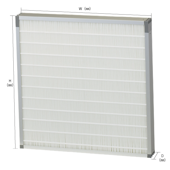 厚さ(D):65mm【コンパクトエアハン対応タイプ】エンボス構造技術により初期圧力損失を最大40%も低減し、長寿命化を実現するハイポテンシャル・フィルタです。