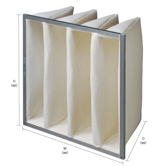 厚さ(D):350mm【袋型】新開発のろ材を使用し、高い捕集効率と圧力損失の低減、多量の粉塵保持を実現!ワンタッチでフィルタの交換が可能。
