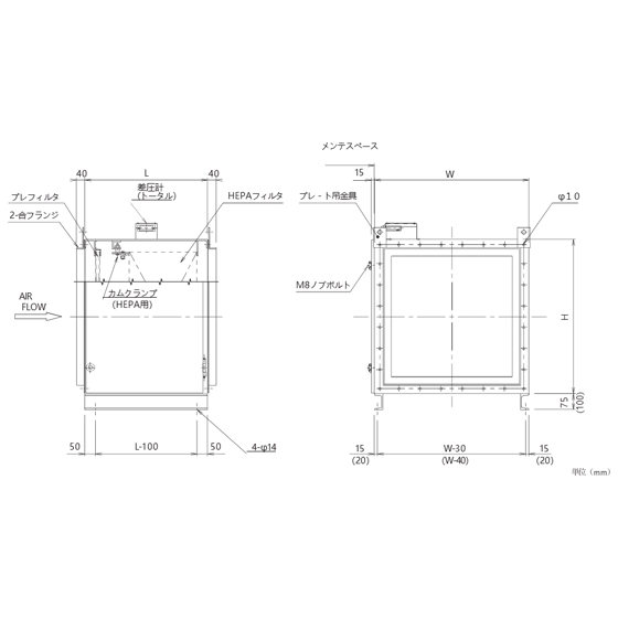 ※ プレフィルタ 610×610×20 吸着剤サイズ 610×610×457 定格風量56㎥/min