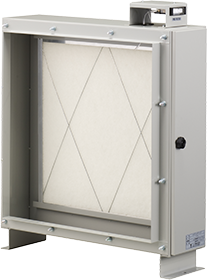 厚さ(D):200mm【リムジンフィルタ用】サイドアクセスタイプのケーシングです。各分野での空調システムにおいて、外気処理または中・高性能フィルタの前処理として最適でコンパクトな設計になっております。※差圧計は標準装備。